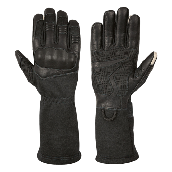 Impact-resistant, flame-retardant gloves with an exceptional anatomical cut that meets high demands for protection against mechanical hazards and absorption of potential blows in the dorsal area of the hand. The glove is designed for police and military interventions in ensuring public order (interventions during demonstrations, against rowdies, to prevent conflicts).