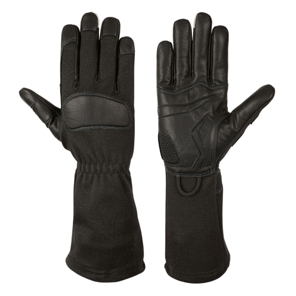 - Special index finger design with a stretched seam on the back side for more sensitive control of the weapon and longer glove life.