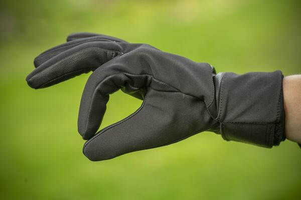 Lightweight, sensitive softshell gloves for colder environments that can be worn all day, with wind and moisture protection, designed for military and police use.