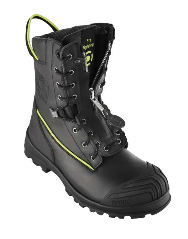 Low semi-fitted, modular boots for firefighters. New generation COMFORT LINE model Desna. The entire GII line stands out for its unique sole with sophisticated self-cleaning tread, durability and auxiliary grip, made of durable cowhide leather with hydrophobic treatment.