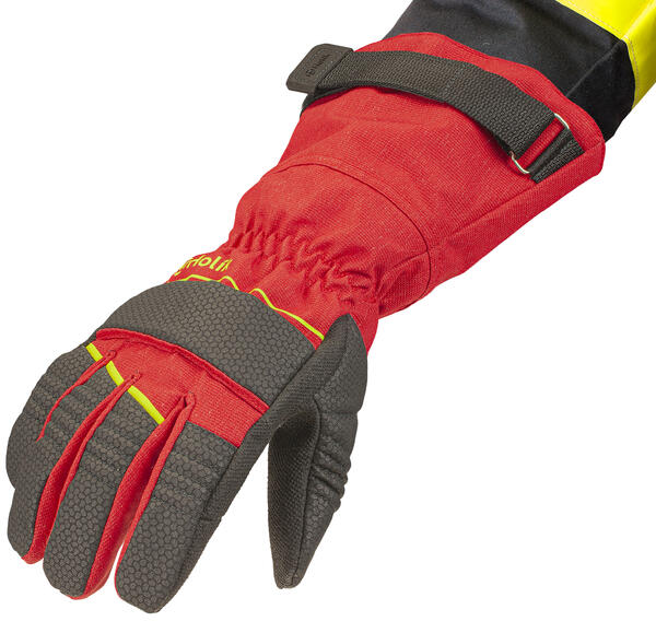 Firefighting glove combining Nomex® materials, aramid knit and FR membrane Porelle®. Our patented HiPro technology protects the entire back of the hand against strike and guarantees unique protection against radiant heat.