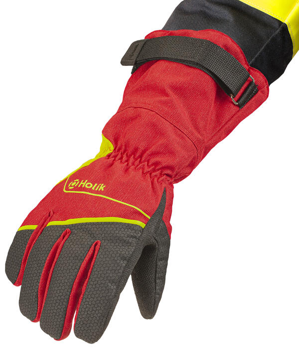 Firefighting glove combining Nomex® materials, aramid knit and FR membrane Porelle®. Our patented HiPro technology protects the entire back of the hand against strike and guarantees unique protection against radiant heat.