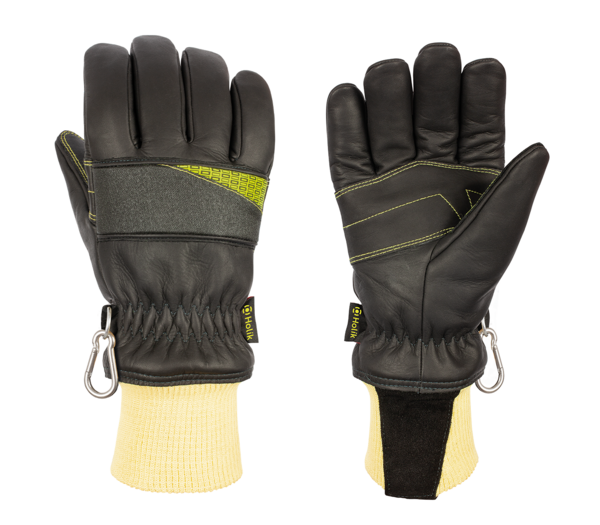 Full leather firefighting glove characterized by its para-aramid reinforcement and silicone coating on the back. The Plus variant also includes impact-resistant padding.
