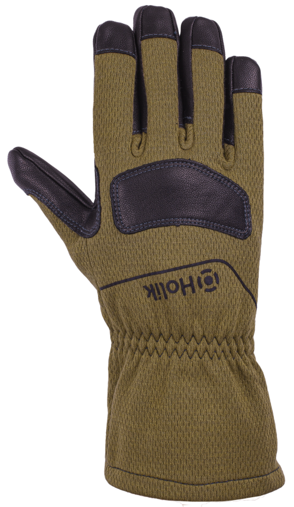 - Back: EffiSHELL – a 3layer laminate with reduced flammability developed by Holík, ensures high breathability and water resistance. The quick-drying knit fabric is supple and flexible. The inner membrane prevents the penetration of carcinogenic substances and other unwanted particles into the inner space of the glove. The layer in contact with the skin is modified to bring maximum comfort, does not irritate the skin and ensures easy putting on and taking off the gloves, even when wet.