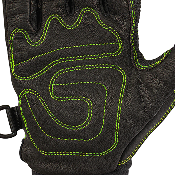 - Plastic ring and fabric loop for hanging the glove on a carabiner.